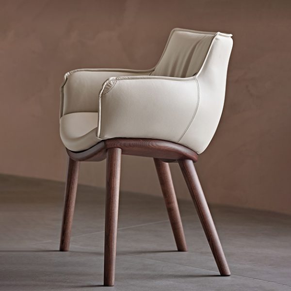 The upholstered seat and frame are both available in a wide range of finishes from the collection.