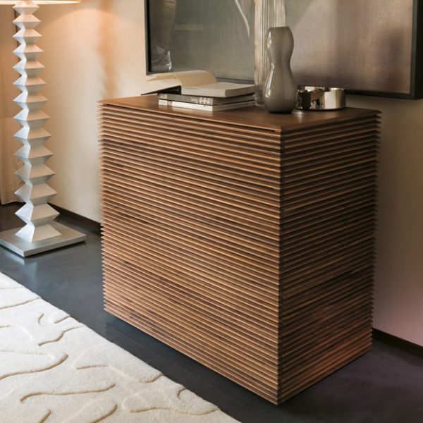 The Riga Chest of Drawers by Porada incorporates a distinctive lateral deign in Canaletto Walnut with four drawers. Â This versatile piece is a striking addition to any contemporary interior.