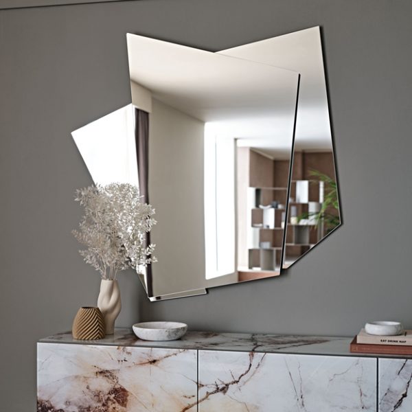 The Cattelan Italia Risiko Mirror features three striking angular shapes layered upon one another to create depth and interest with a sophisticated, streamlined look.