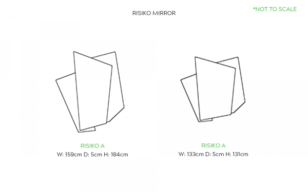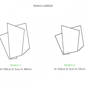 Risiko A: W: 159cm D: 5cm H: 184cm, Risiko B: W: 133cm D: 5cm H: 131cm