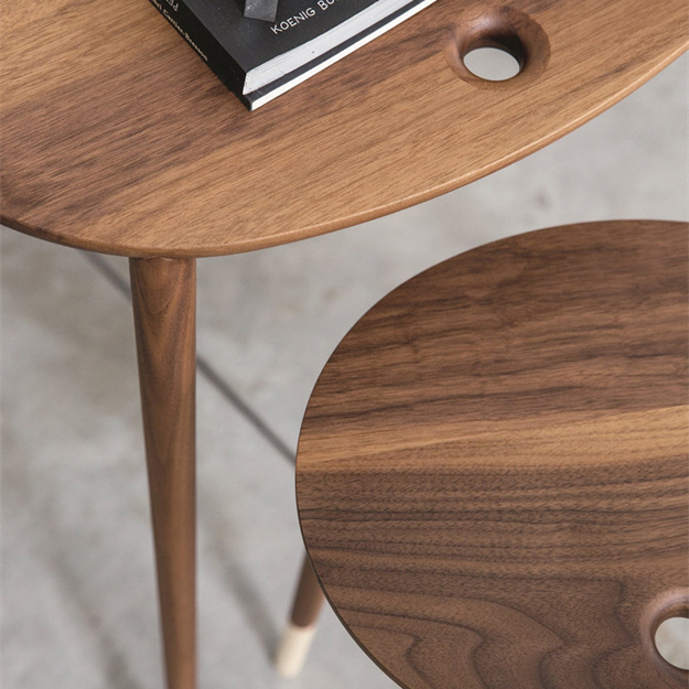 Practical, versatile and smart, the Rogers is a nest of two side tables made from solid Canaletto Walnut. Its long feature legs are highlighted by tips in natural maple for an elegant contrast.