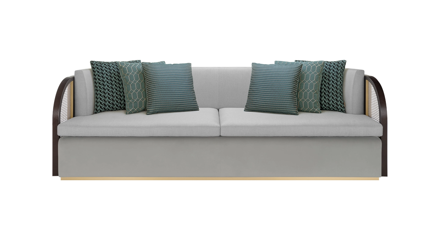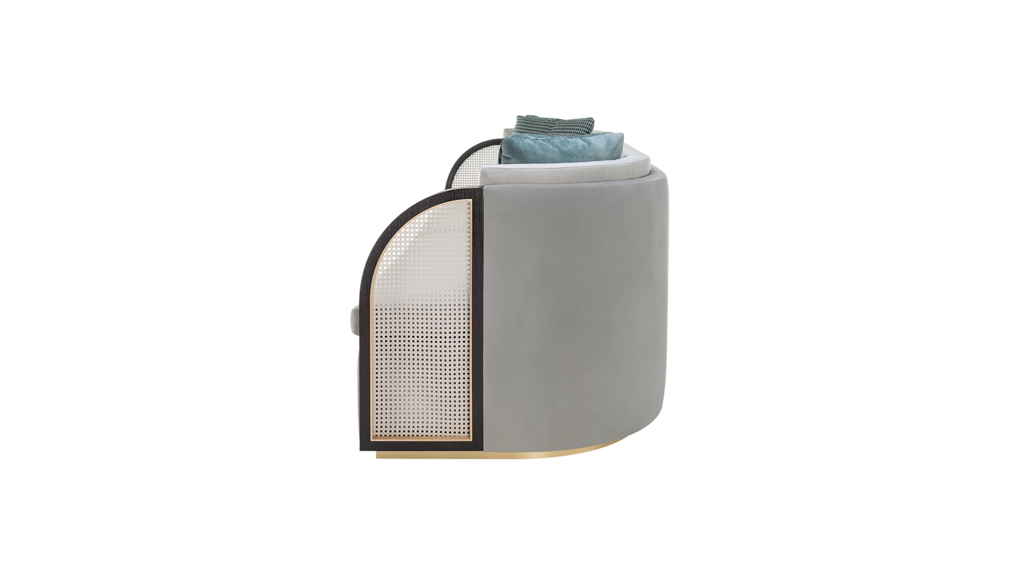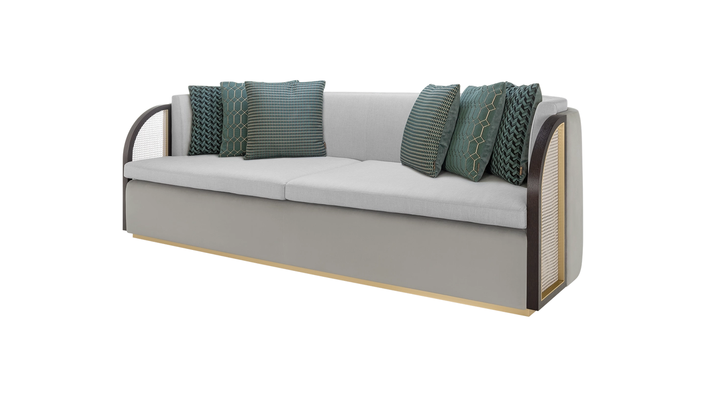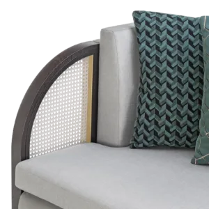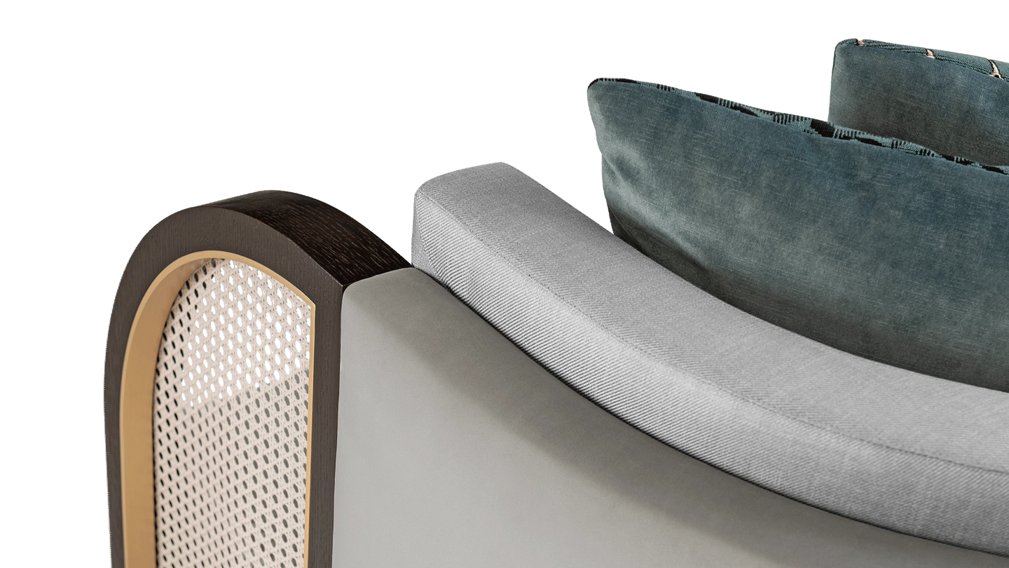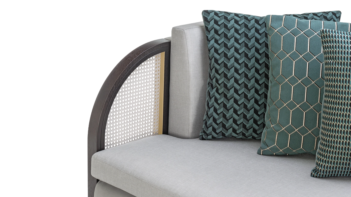 “As inviting as the Eternal City, the ROME sofa beckons you with curved arms, complete with characteristic rattan panels. It’s finished with velvet and linen, making it ultra-cosy to sink into. ”