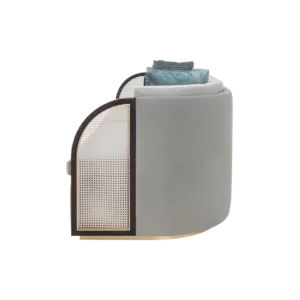 “As inviting as the Eternal City, the ROME sofa beckons you with curved arms, complete with characteristic rattan panels. It’s finished with velvet and linen, making it ultra-cosy to sink into. ”