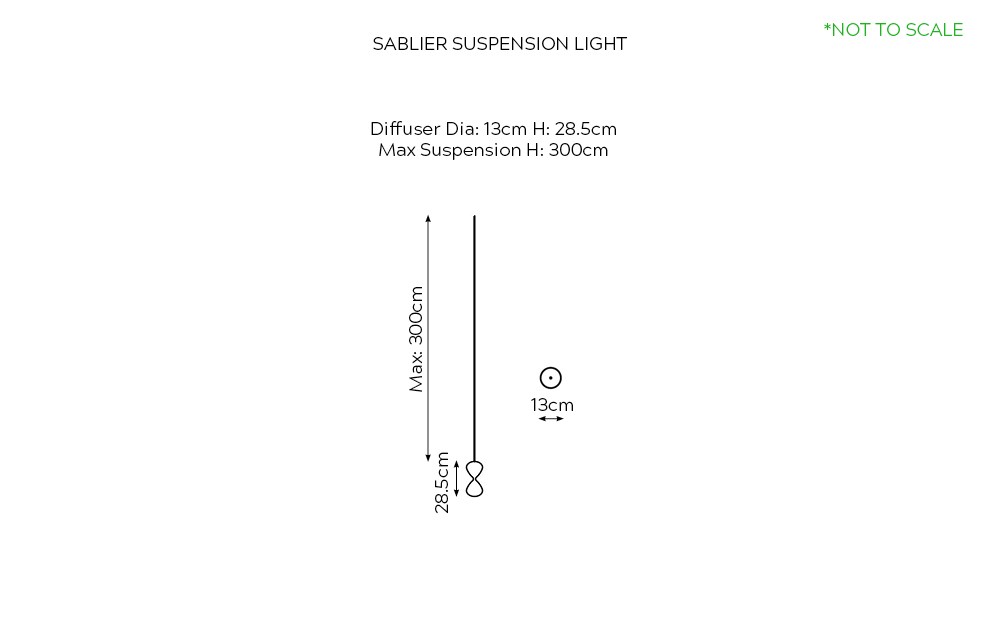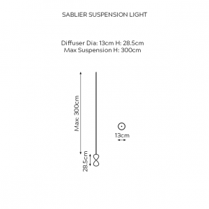Diffuser Dia: 13cm H: 28.5cm, Max Suspension H: 200cm