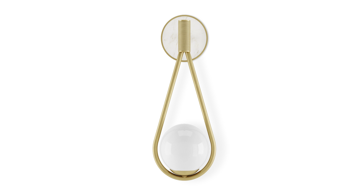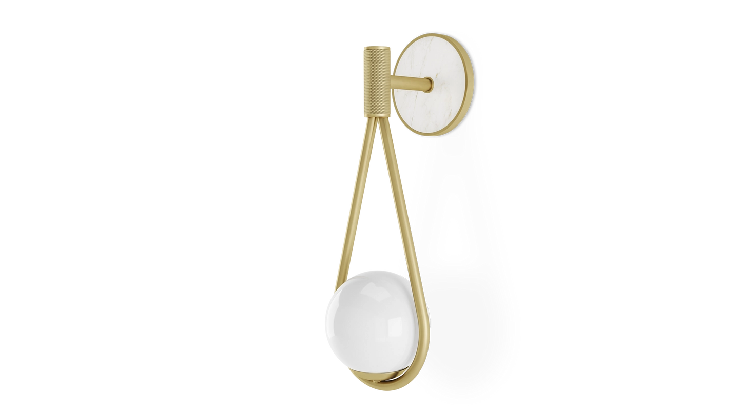 A classic combination of stone and brushed brass framing a milky white opaline glass bulb, the SAINT MORITZ’s possesses a timeless charm that compliments both trad and modern settings.