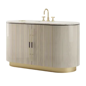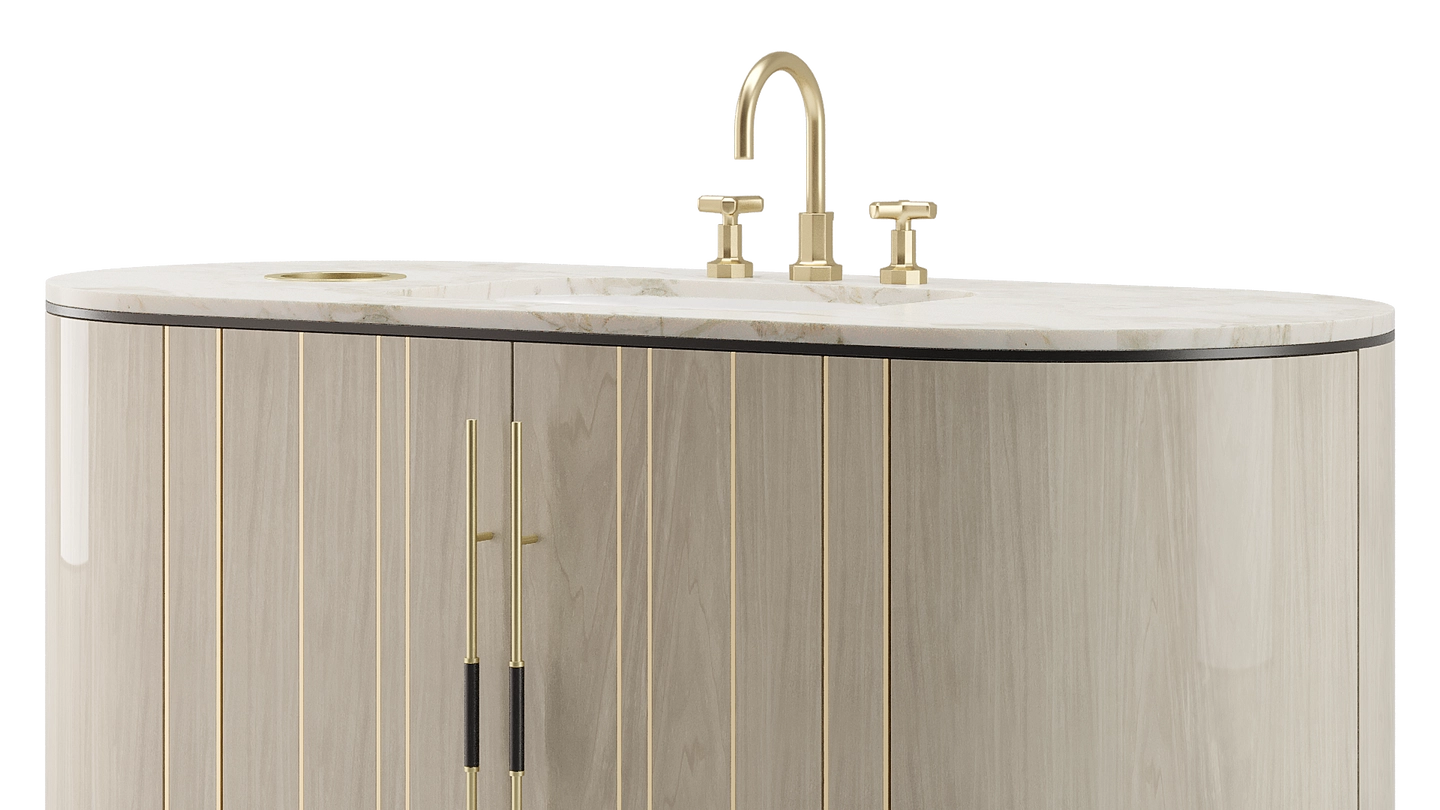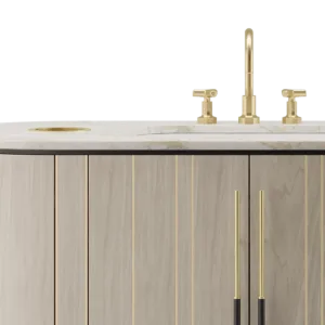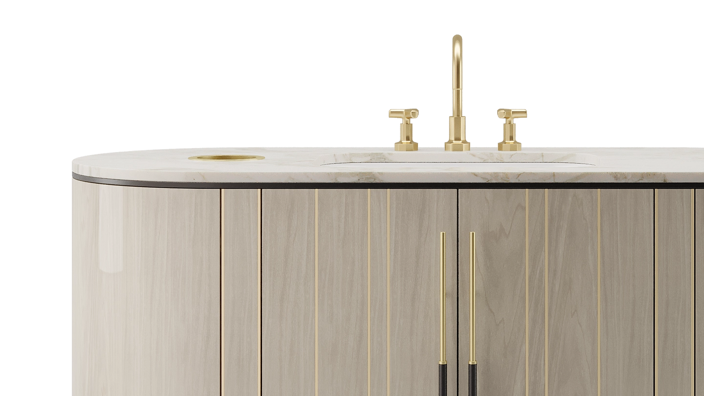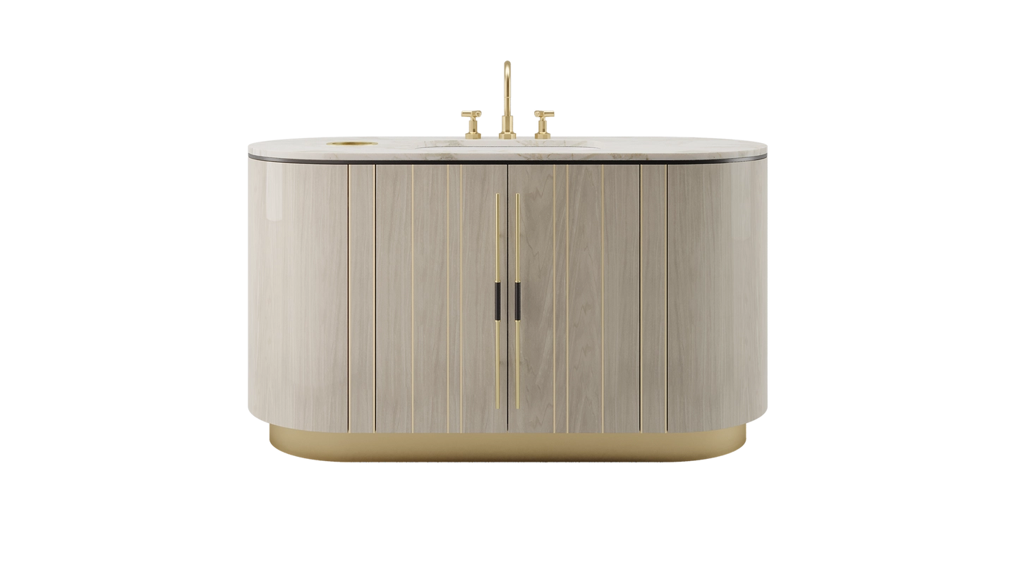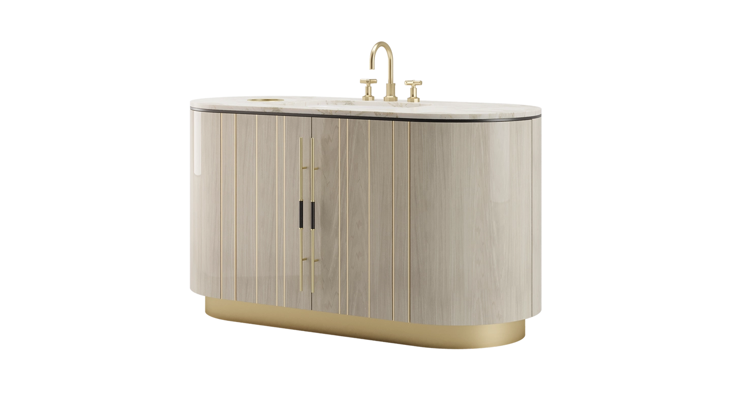 Featuring a glossy wood veneer structure, a smooth marble top, discrete door handles and a towel rail, the SALAMANCA vanity unit possesses an understated elegance that quietly speaks volumes. If more surface space is high on your bathroom wish list, look to the attractive SALAMANCA vanity unit, which has generous sink-side space that also incorporates a handy used-towel depository.