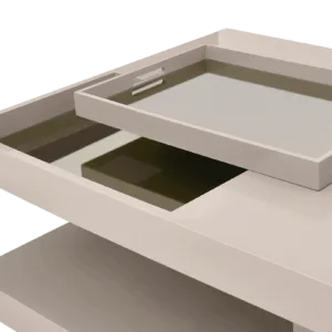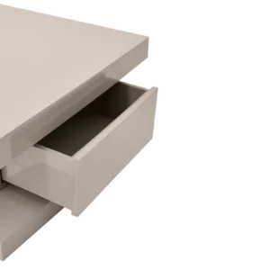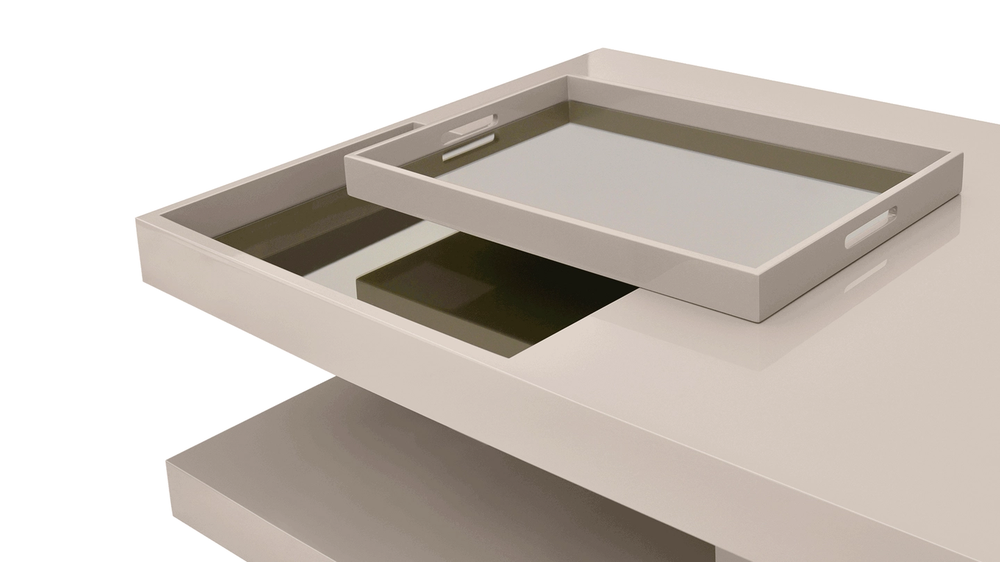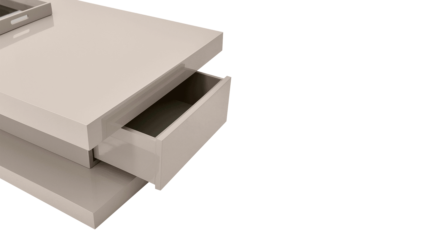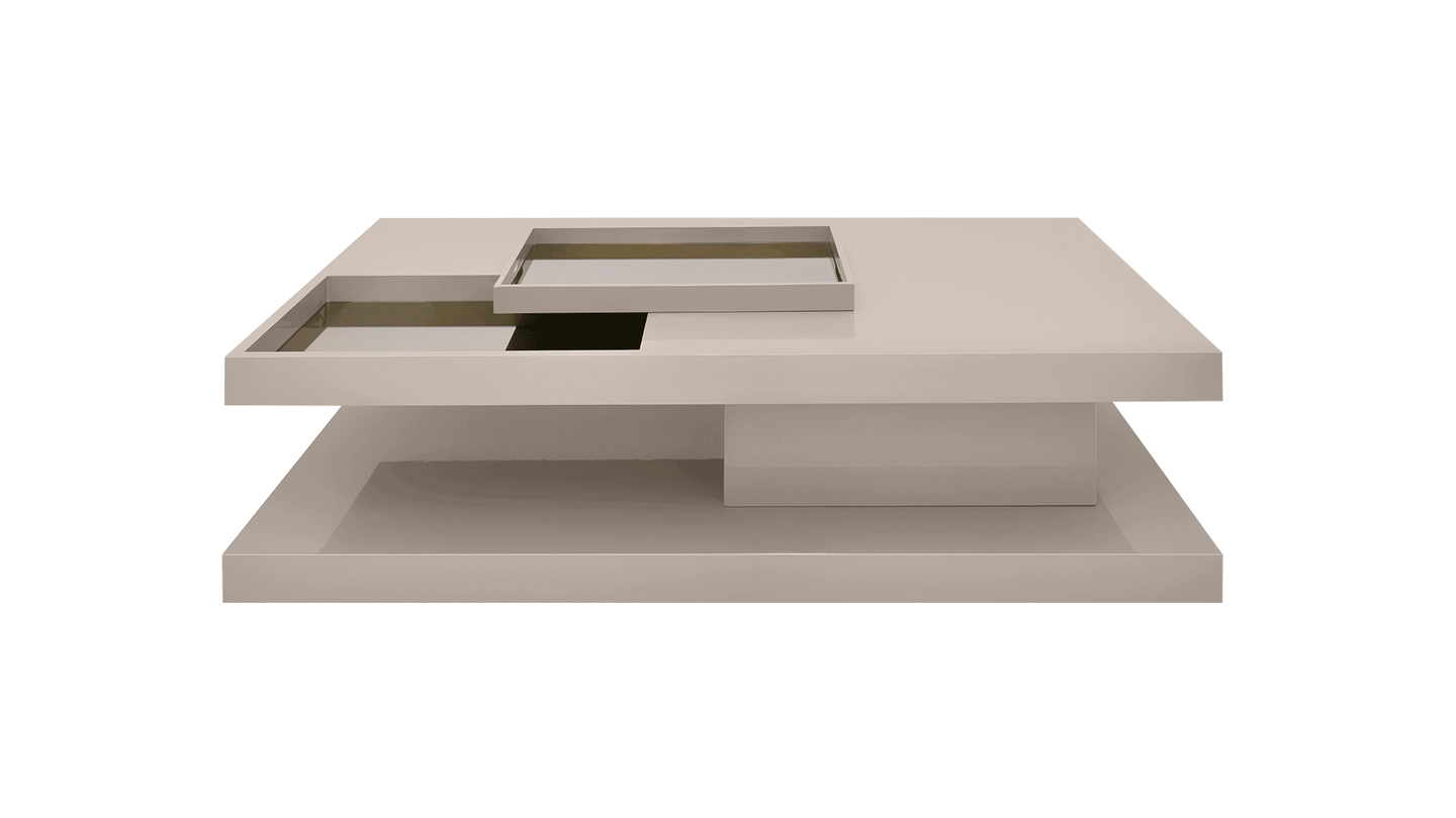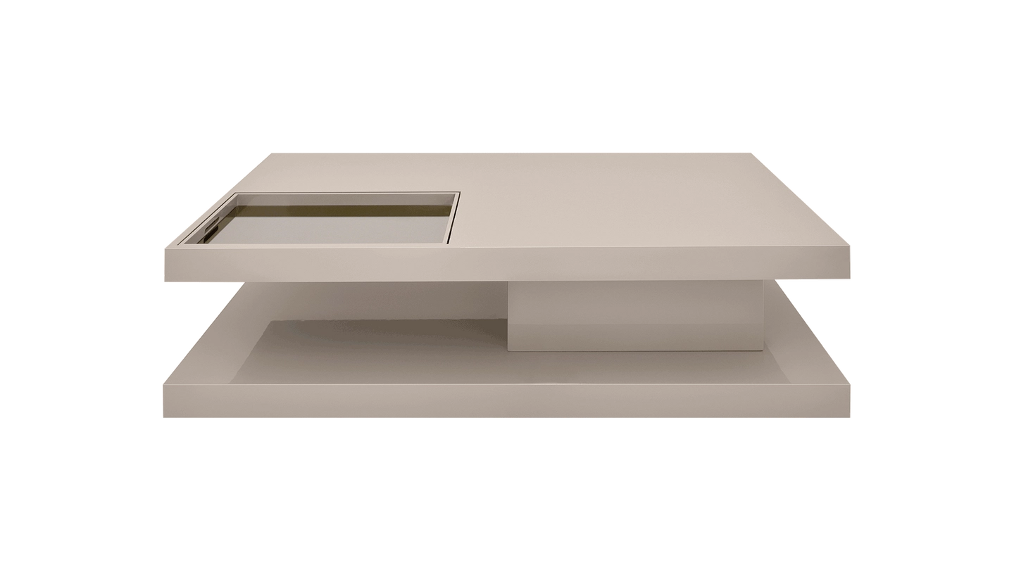 Inspired by modernist architecture, the lacquered wood SALDANHA Coffee Table includes a few surprises. The cantilevered surface, which incorporates a removable tray, hovers over the base and is braced by a recessed section that conceals a secret drawer.