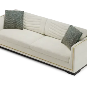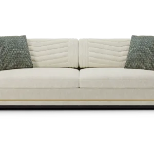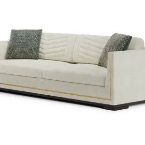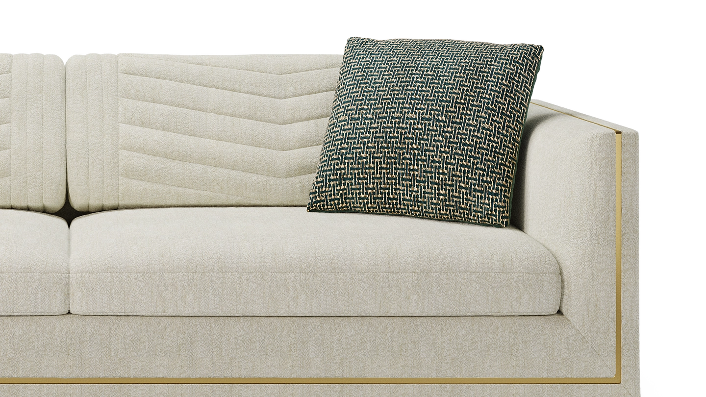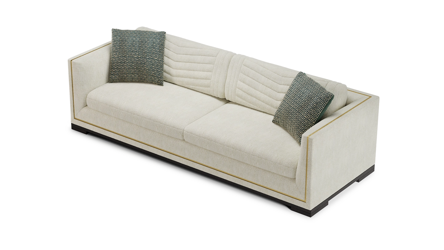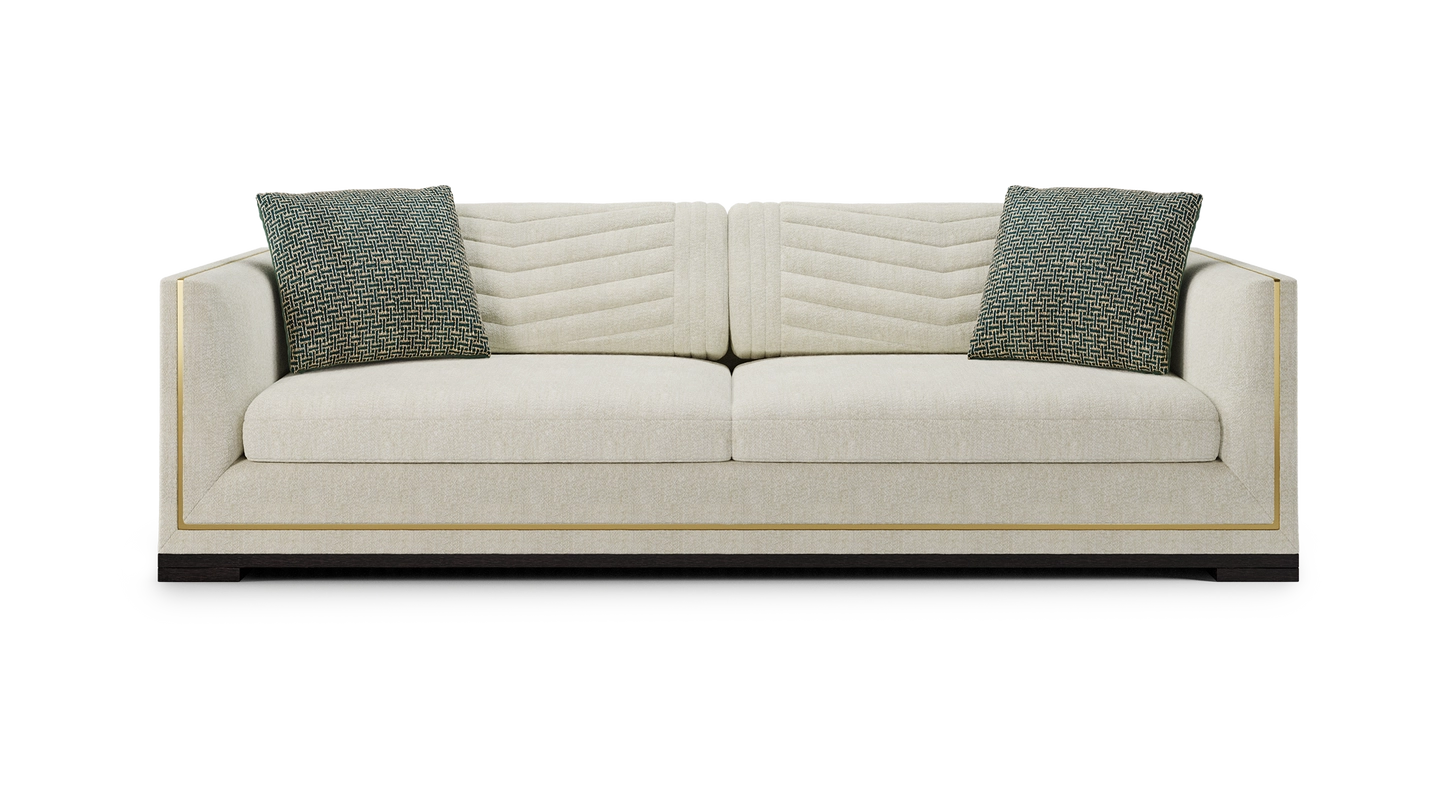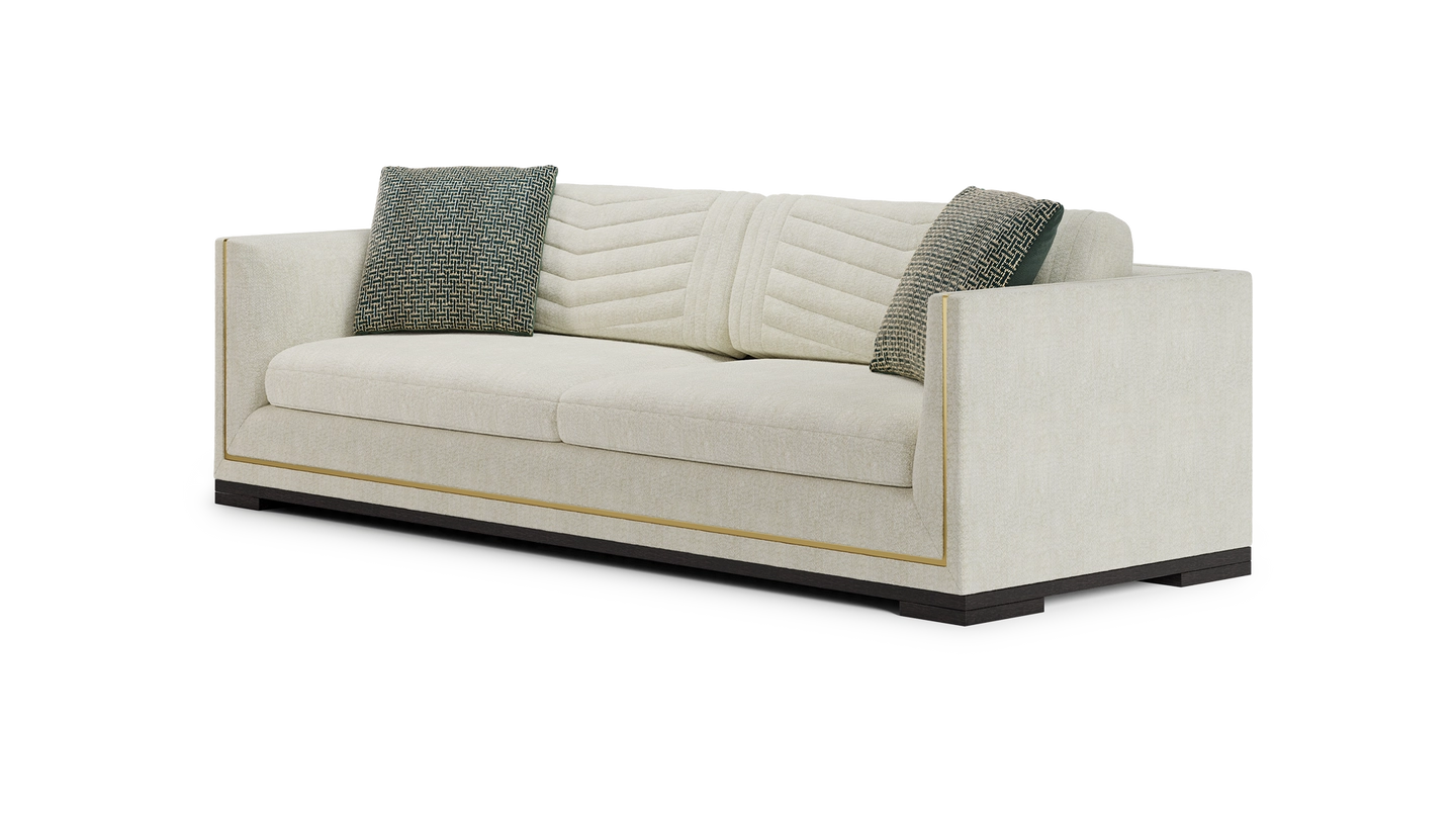 An outright classic, the perfectly proportioned SALZBOURG sofa introduces character to its immaculate silhouette in subtle ways. Notice the chevron stitching across the back cushion, the metallic strip that fames the design and the slender wooden base that adds a sense of gravitas.