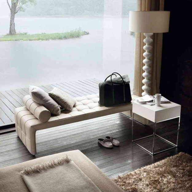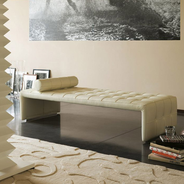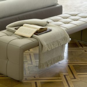 The Scarlett is a luxurious bench seat fully upholstered in a range of fabrics and leathers with quilted button detailing across the top and sides.