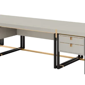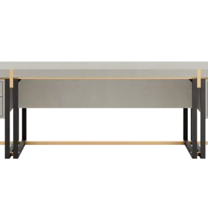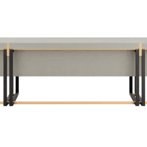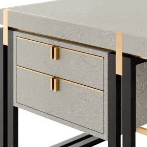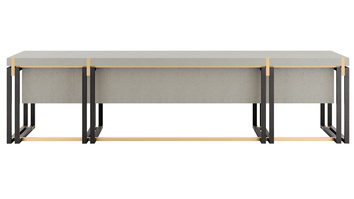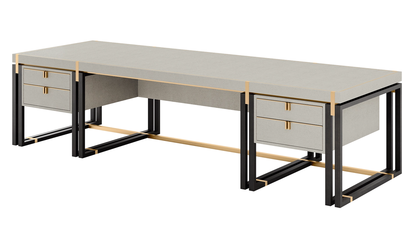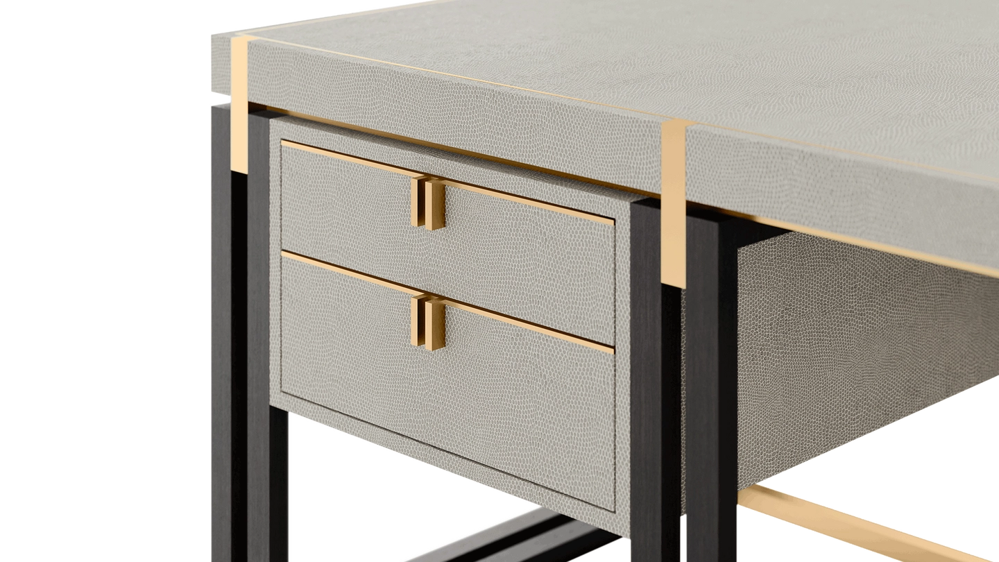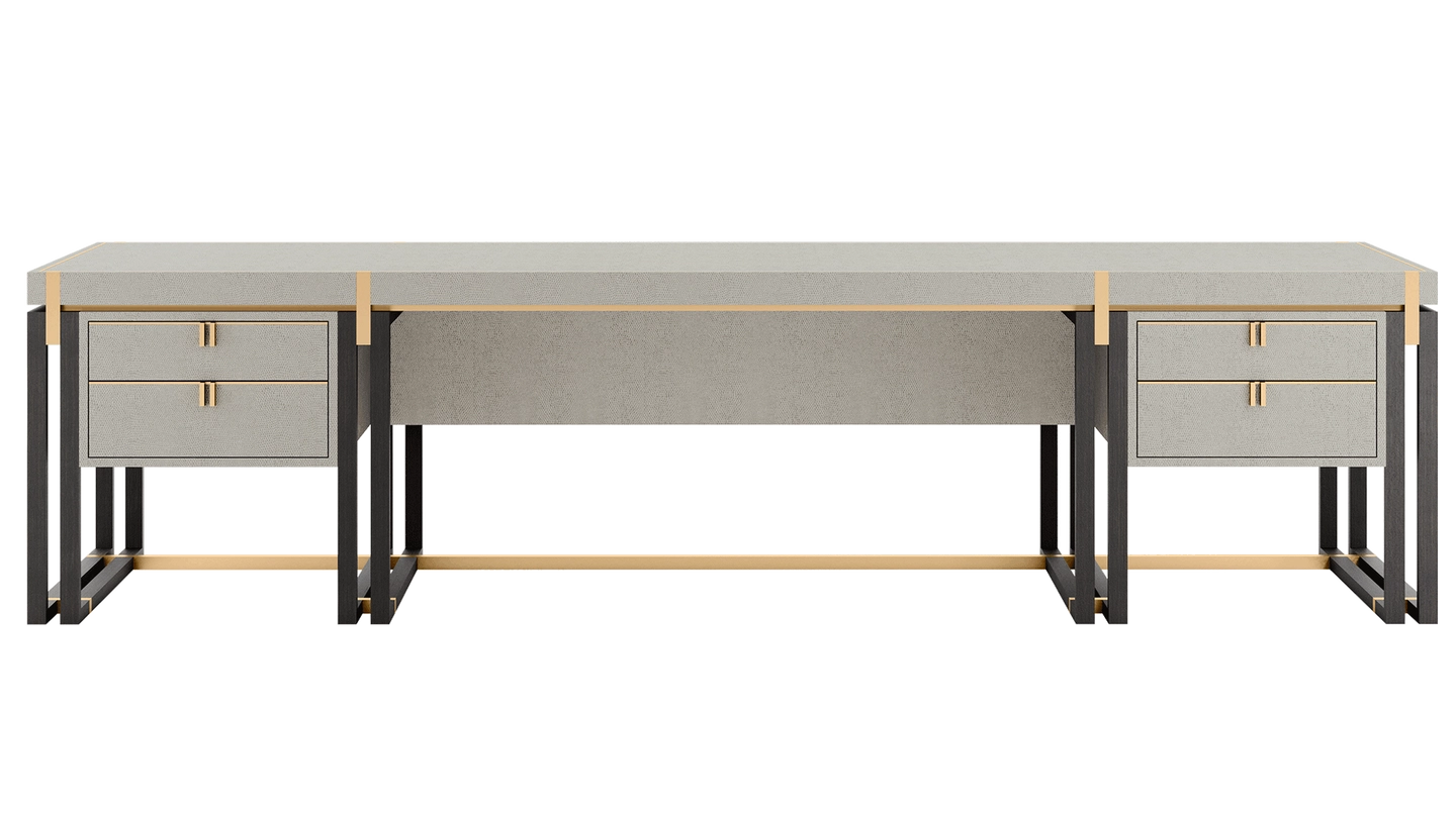 An imposing design, the SEOUL desk provides a vast workspace that measures 300 centimetres in length. Crafted from a rich material mix that includes solid wood, brushed brass and leather, it also incorporates accessible storage in the form of four suede-lined drawers.