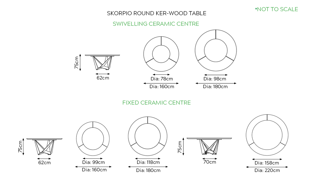 | Size | Dia: 160cm H: 75cm, Fixed Ceramic Centre Dia: 99cm, Dia: 160cm H: 75cm, Swivelling Ceramic Centre Dia: 78cm, Dia: 180cm H: 75cm, Fixed Ceramic Centre Dia: 118cm, Dia: 180cm H: 75cm, Swivelling Ceramic Centre Dia: 98cm, Dia: 220cm H: 75cm, Fixed Ceramic Centre Dia: 158cm |