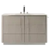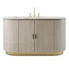 With its elegantly curved form, the SOCHI vanity brings a feminine feel to your bathroom. It features a glossy veneer and brass accents in soft tones.