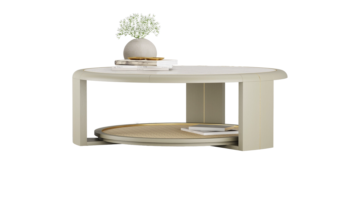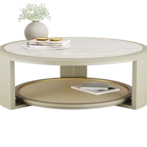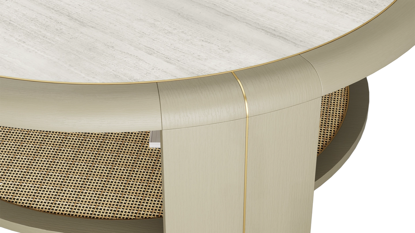 The SORRENTO Coffee Table brings a laidback feel to your lounge. Stone sits atop rattan, combining elements to bring the outdoors in. Meanwhile, brushed brass adds elegance.