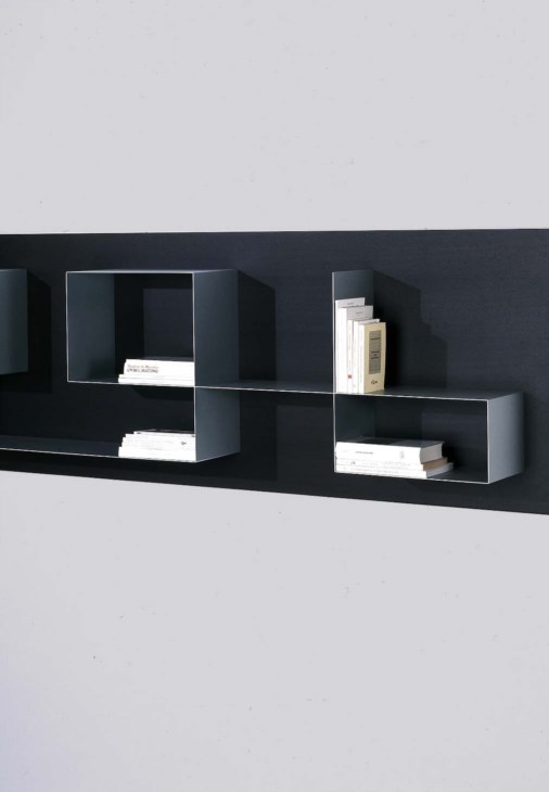 Bookcase unit to be horizontally or vertically positioned. Shelves in aluminum varnished folded sheet metal. Back panel in wood or lacquered finish. All these Designs are Fully Bespoke . Our Expert Team can create any Design as per your specifications and requirements. For More information please contact our expert.