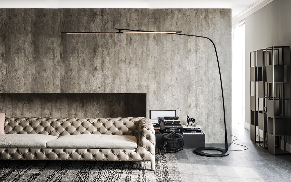 The Stealth is a contemporary oversized floor lamp featuring a functional swivelling lampshade that creates a unique diffusion of light. The stylish embossed lacquered steel base is available in a choice of colours.