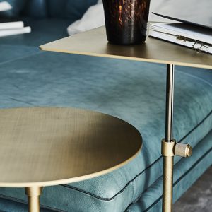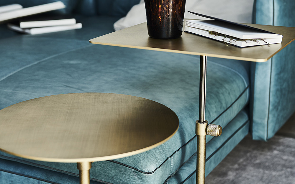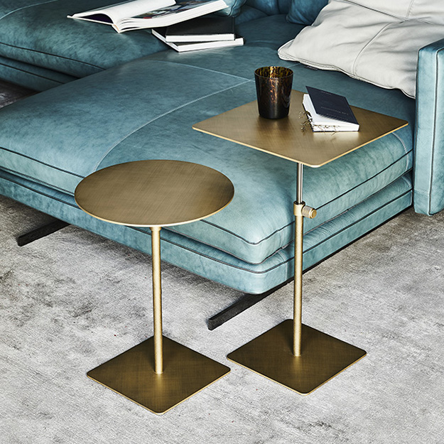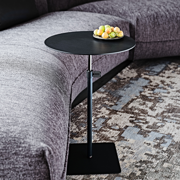 The Step is an adjustable side table that can quickly be extended in height by rotating a dial on the stem. The table is available in two sizes with either a square or round top.