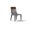 Side chair in bleached solid beech wood with back and seat in combination of printed iguana leather and velvet or suede fabric. Base with 4 legs in wood. Fabric needs for seat inside/back: mt. 1,4 Leather needs for outside/back:mt. 1,4