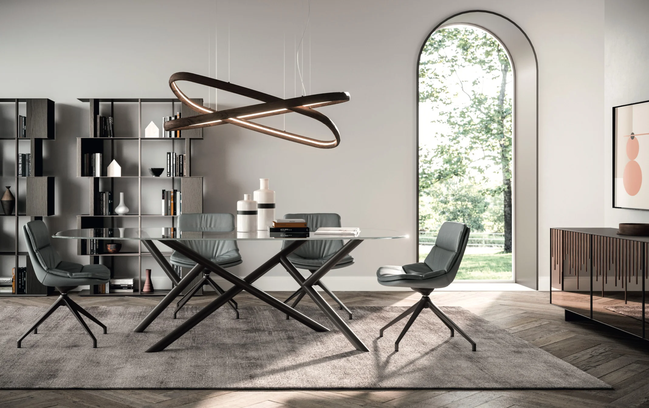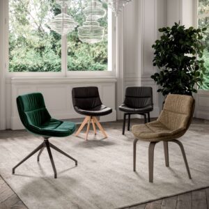 A family of armchairs with a soft and cosy seat, presented with different covers. The seams on the backrest design the shapes and let the softness shine through. Different bases, both in design and material, offer multiple possibilities of combinations to satisfy every environment and circumstance.