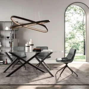 Fully upholstered chair in various finishes. Swivel structure in painted metal.