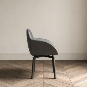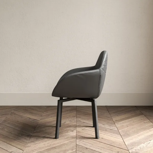 Chair with armrests, fully upholstered including in the structure, in various finishes. Swivel structure with return spring.