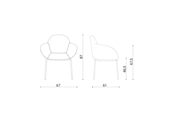 The design of these seats does not compromise on comfort. A style icon with soft shapes that blend perfectly with a modern living room and with an informal office space. It generates a sense of order and refinement. A versatile seat with familiar geometries, generous proportions and enveloping lines.