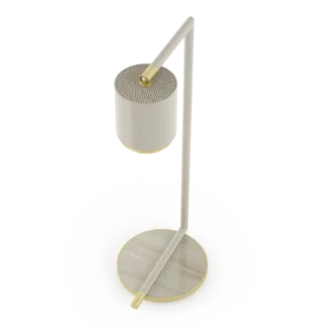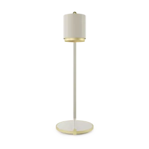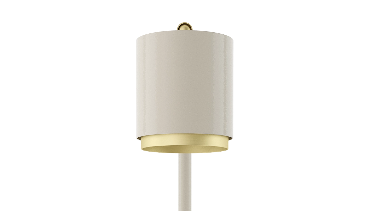 Crafted from an elegant fusion of gloss painted iron and brushed brass, the streamlined TOBAGO table lamp’s long stem allows the suspended shade to cast a wider glow. Pair with the TOBAGO wall lamp for a coordinated look.