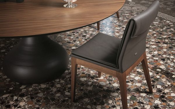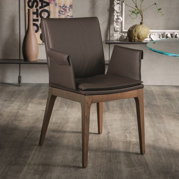 With a solid frame, the Tosca Chair is a contemporary design featuring an upholstered seat and backrest, with a veil-like cushion layered elegantly over the seat. Available as a low or high back chair with or without arms in a selection of real or synthetic leather finishes.