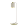 Showcasing the inherent natural beauty of three luxurious materials, the stunning TRIER table lamp layers circles of dark veined stone, polished wood veneer and brushed brass, creating a sculptural base that contrasts handsomely with a double-silk shade.