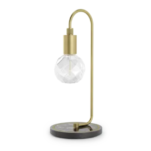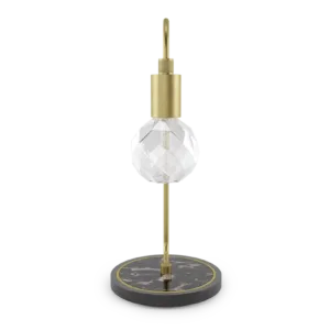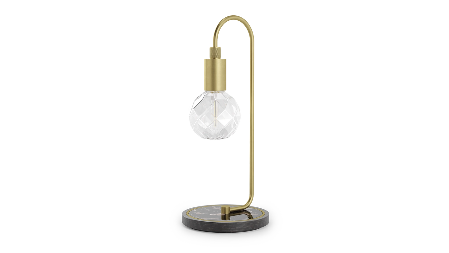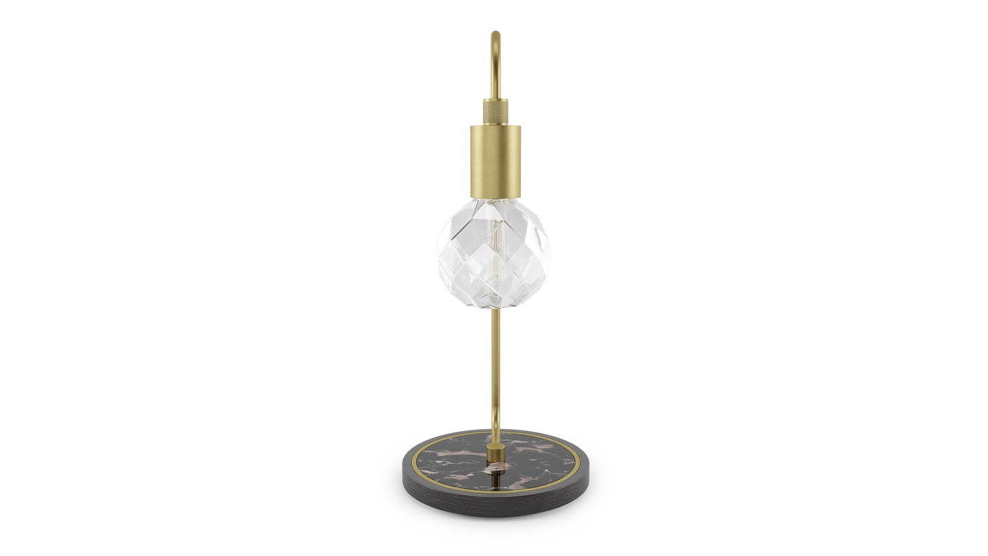 The TRIESTE table lamp combines an Art Deco allure with an industrial-style silhouette by making a feature of the cut-glass bulb.