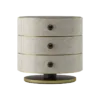 A sleek circular design featuring three suede-lined drawers, the wood veneer and brushed-brass TULSA bedside table has an ace up its sleeve: a surface pedestal topped with bronze mirror. Accessorise with a complementary table lamp and it will playfully reflect light around your sleep space.