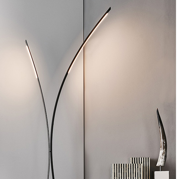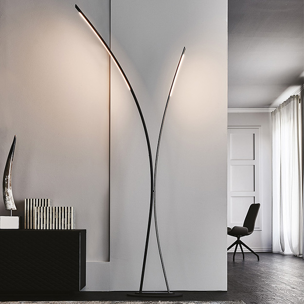 The slender Twin floor lamp by Cattelan Italia is sleek, stylish and elegant. Two gentle arcs of differing heights balance and complement one another expertly, in a graphite lacquered steel finish.