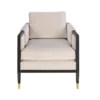 The UDAIPUR armchair uses materials in truly innovative ways. Its precisely angled arms are crafted from edifices of wood veneer with a thick metallic seam. These effortlessly suspend a smoothly upholstered seat, while side cushions offer further comfort and support.