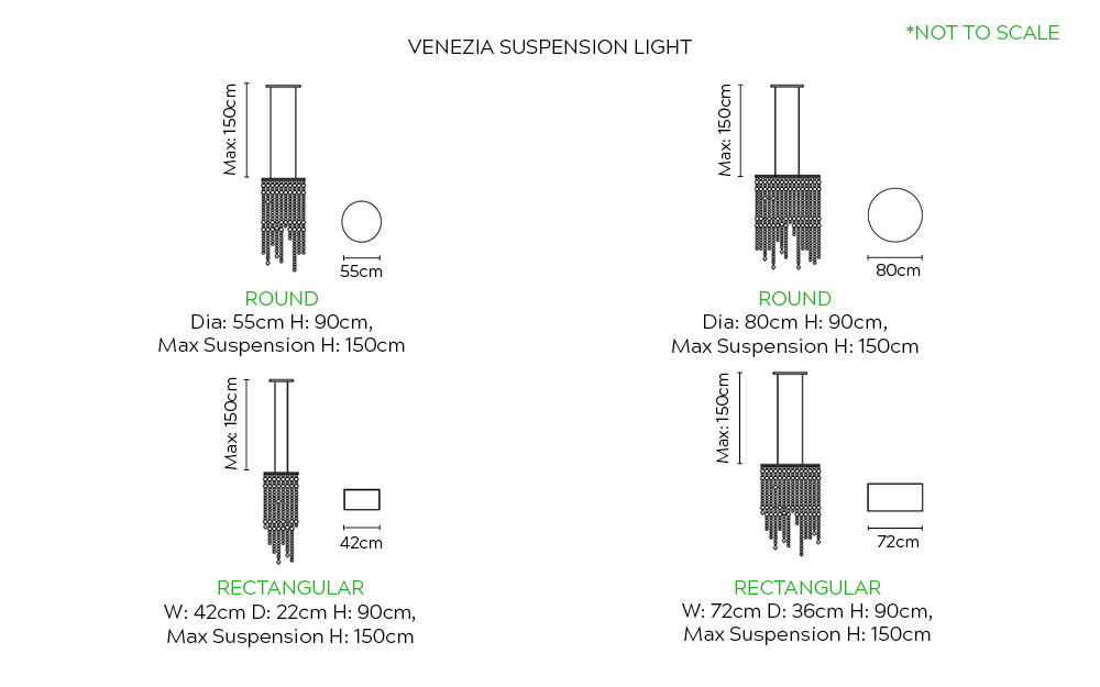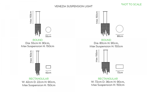 Max Suspension Height: 150cm, Max Suspension Height: 350cm