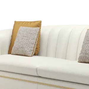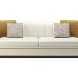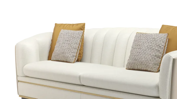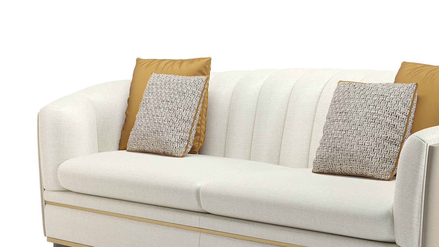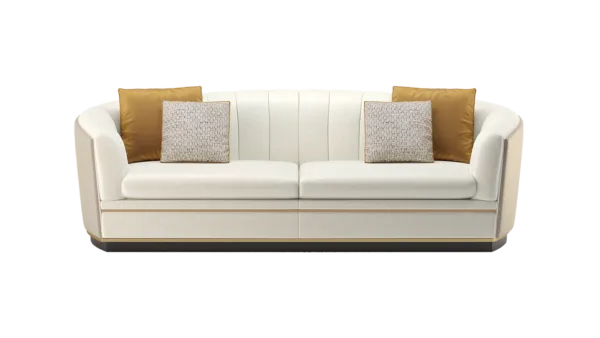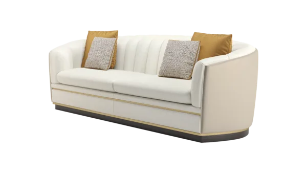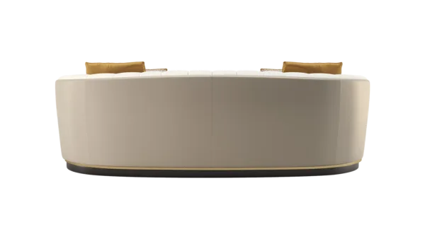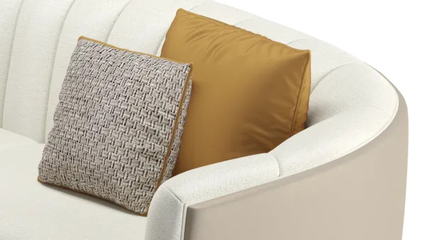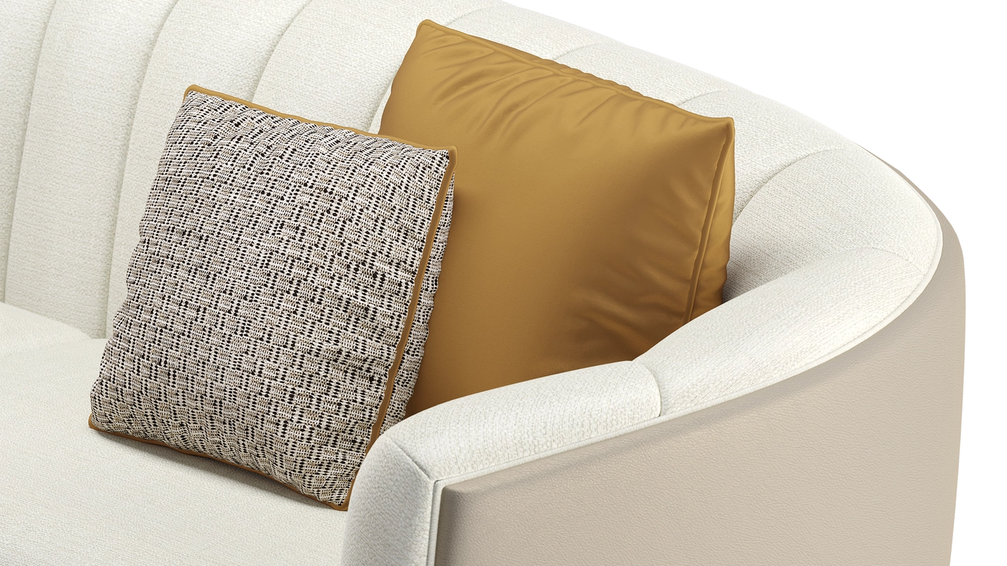 A classic tuxedo-style design, the chic VENICE sofa showcases the expertise of FRATO’s master craftsmen, who seamlessly upholster the design’s curved backrest in deeply cushioned sections and a contrasting fabric across the rear. Metal detailing at the base adds a pleasing point of difference.
