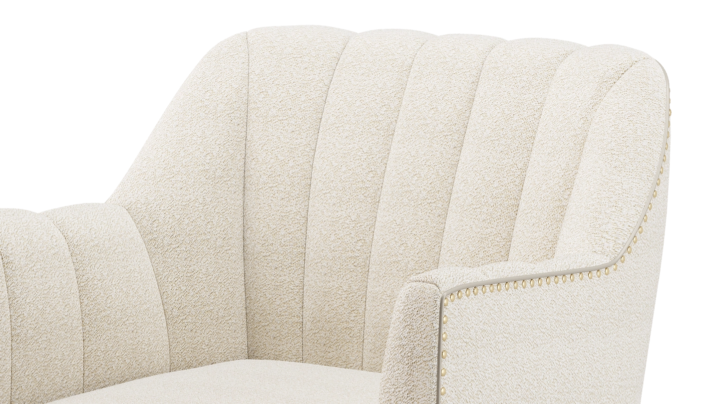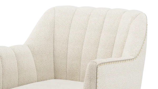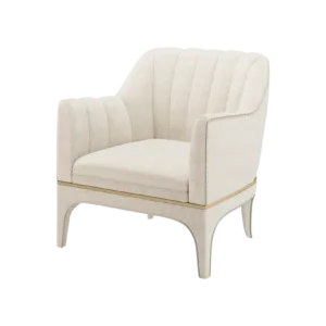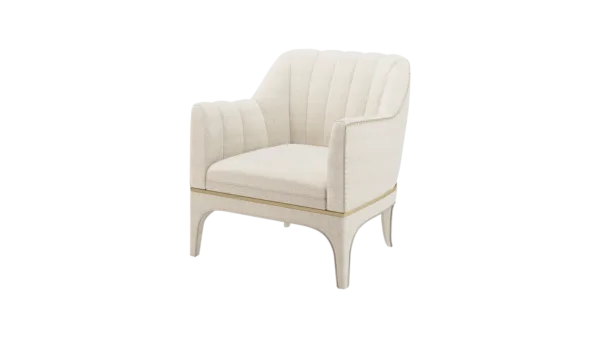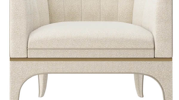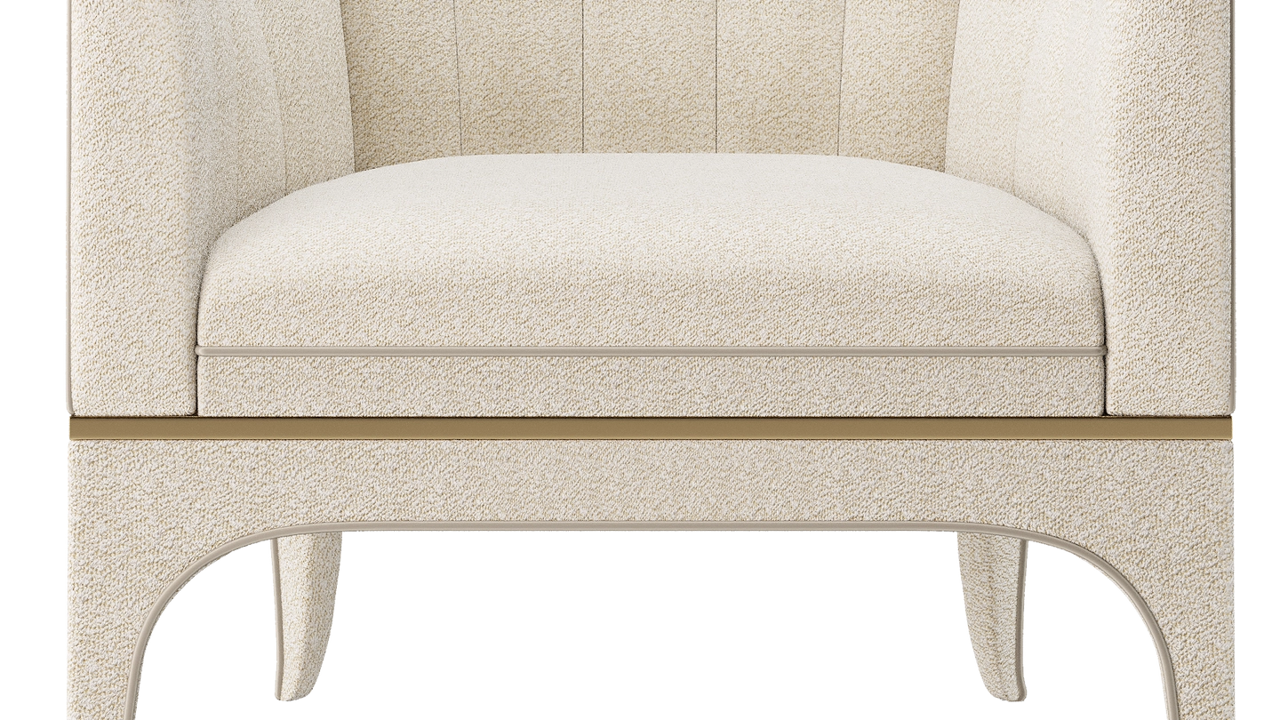 The sleek VERDI armchair’s pared-back palette showcases the beauty of just three luxury materials to dramatic effect: plush velvet covers the seat and legs, smooth satin provides the piping and lustrous brushed brass highlights a seam and a flowing line of studs.