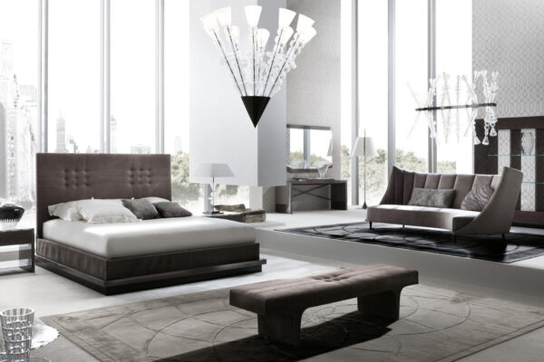 Available in first grade leather, nubuk leather, lizard printed leather, velvet or suede fabric. Structure in high gloss polyester grey lacquer. Details in black nickel steel with Giorgio Collection logo inserts.