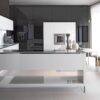 Cuisine born from the desire to deconstruct the classic vision of the kitchen. The stone elements together with the lacquering of the columns alternated by the transparency of the glass create a unique result.