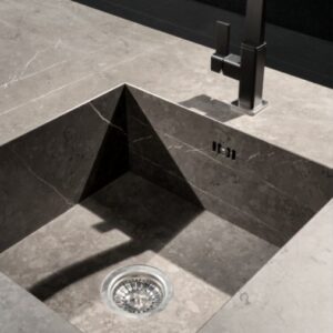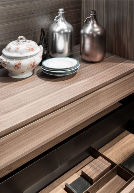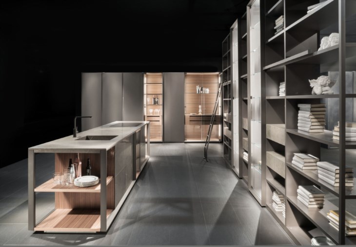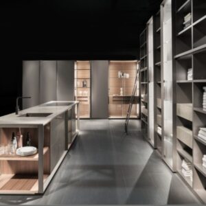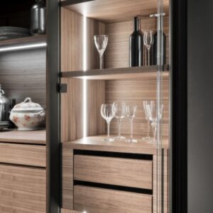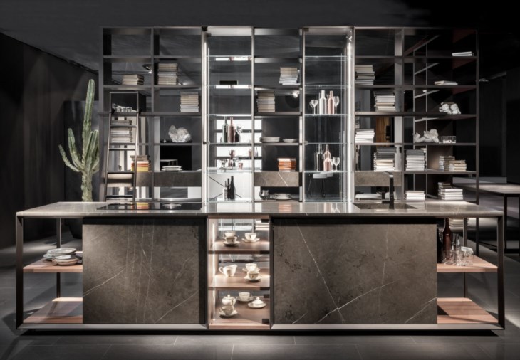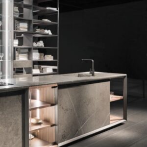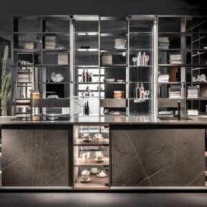 Cuisine born from the desire to deconstruct the classic vision of the kitchen. The stone elements together with the lacquering of the columns alternated by the transparency of the glass create a unique result.