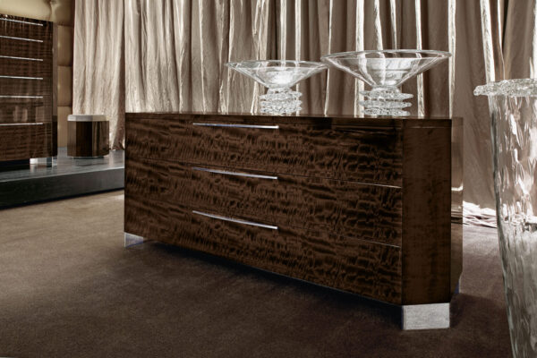 Dresser in european curly eucalyptus veneer in high gloss polyester.