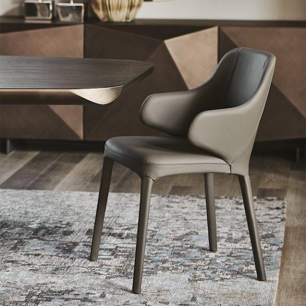 The Wanda is a sophisticated chair with statement stylised arms and a fully upholstered frame with detailed stitching. Choose from a selection of synthetic or soft leather finishes.