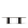 The Wind dining table can be customized in a multiple selection of finishes to create a unique piece. Made of a rectangular bevelled table top in porcelain tile or herringbone design. Three wide metal legs available in black or white. Available in various sizes.