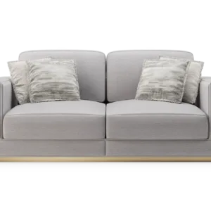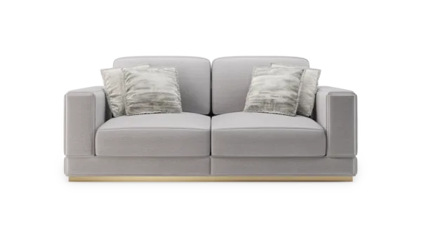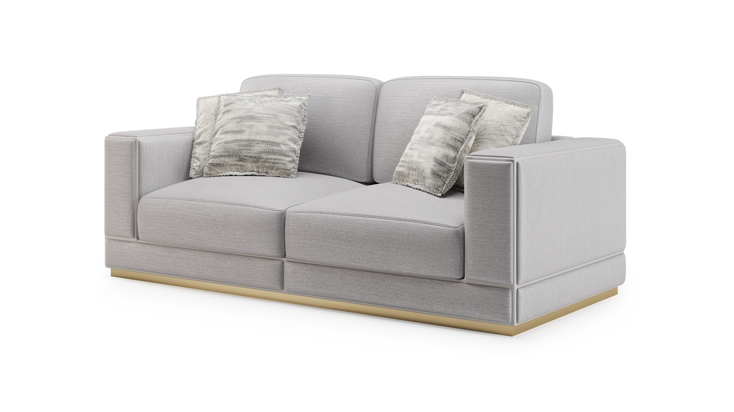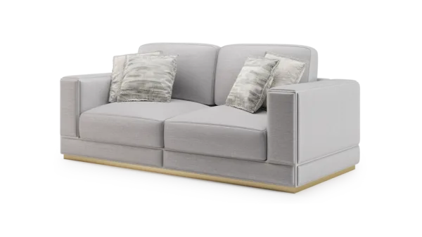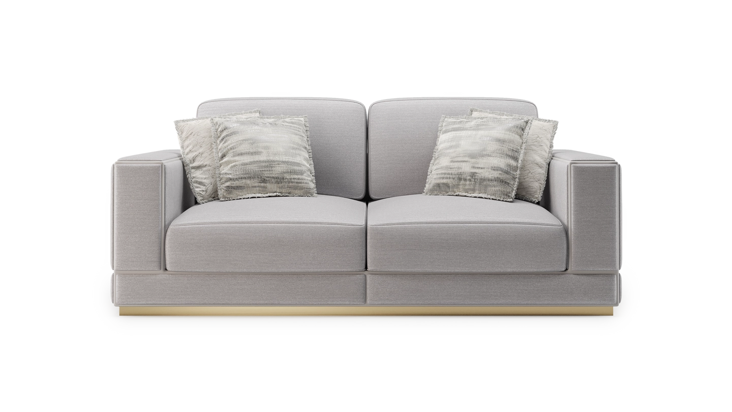 A clean-lined and contemporary take on a Lawson-style sofa, the two-seater WINDSOR includes some unexpected design details. These include woven fabric panels layered over smooth satin and a slimline, brushed-brass base.