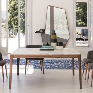 The Ziggy is a classic dining table with a square or rectangular frame in a solid Ash, Canaletto Walnut or Matt Lacquered finish. The table top is available in a variety of Marble or Glass finishes.