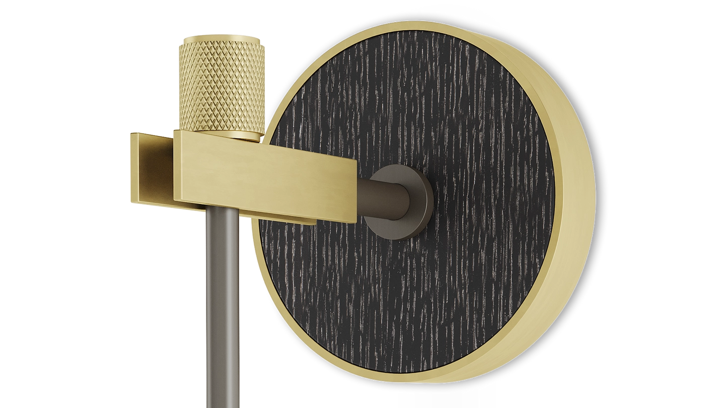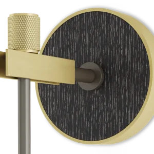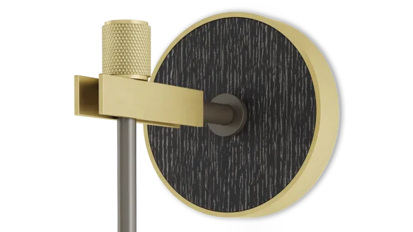 For an all-time classic design, look to the sophisticated ZURICH wall lamp. Featuring a double-silk shade, its structure blends brushed, knurled and oxidised brass to stunning effect, while a circle of wood veneer provides a note of contrast.